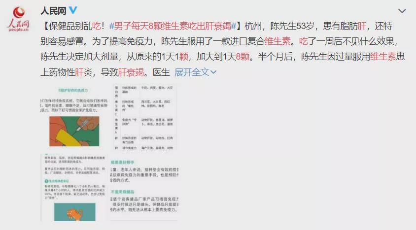 头晕、记忆力下降、食欲不振、肌肉痉挛、免疫力低下、情绪异常…… 很多人都认为这是身体缺乏维生素的“报警”信号! 此前,杭州的陈先生为提高免疫力选择服用复合维生素,吃了一周后没有明显效果,于是决定加大剂量,从原来的1天1颗,改为1天8颗,结果半个月后被查出患上药物性肝炎,严重到肝衰竭的程度! 编辑