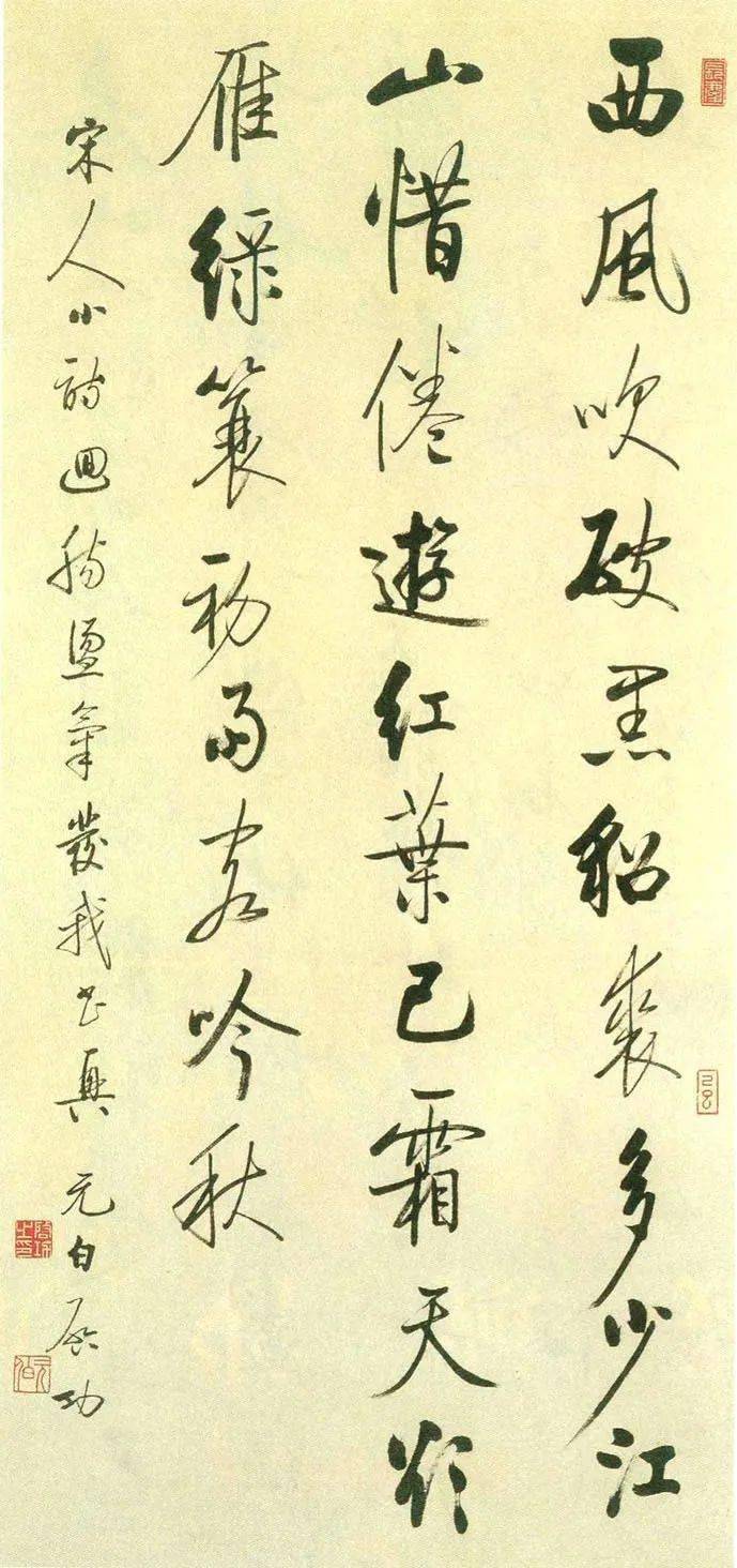 行书:“双湖偃长虹,月出微澜静。鼓枻独沿洄,流光荡空影。”