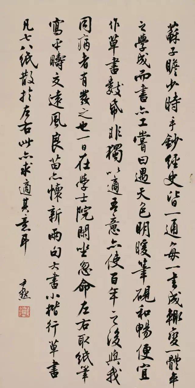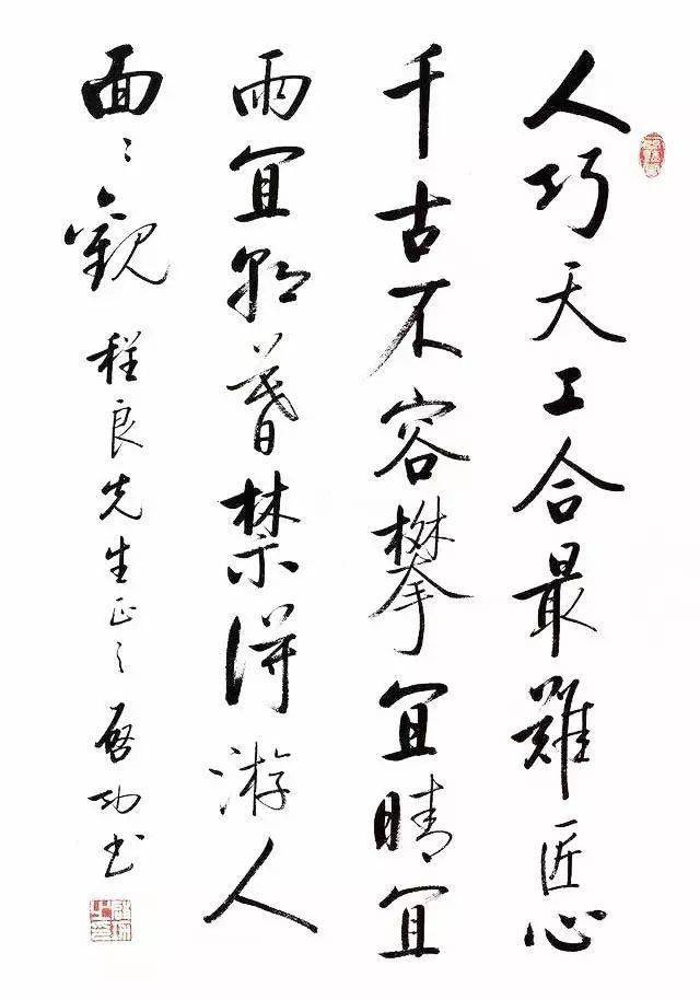 行书《诗品》:“取语甚直,计思匪深。忽逢幽人,如见道心。晴磵之曲,碧松之阴,一客荷樵,一客听琴。”