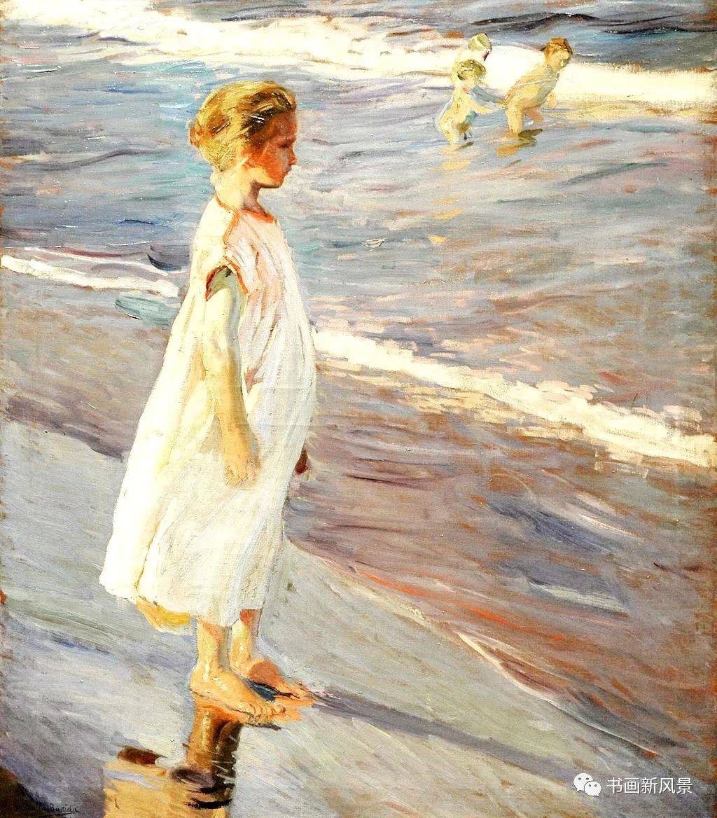 岸上的希腊女孩 Joaquín Sorolla(1863-1923年),一位出生于西班牙第二大海港“阳光之城”瓦伦西亚的画家。他非常喜欢画家乡的阳光、海滩和天空。其成熟时期的作品多被认为是印象派、后印象派以及光影主义的杰作。